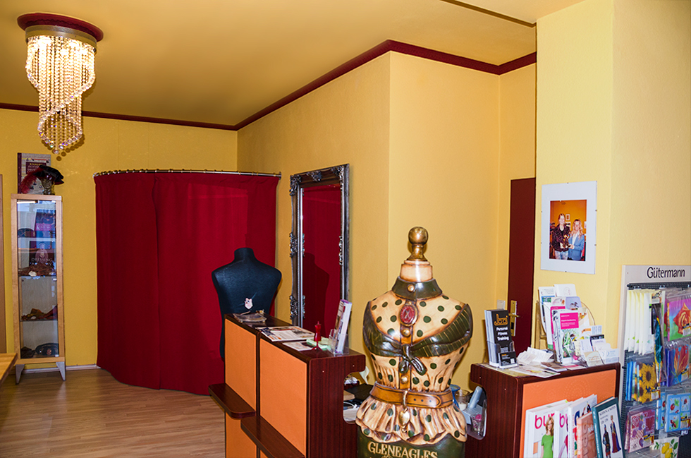 Als ausgebildete Damenschneiderin eröffnete ich im Jahr 2004 ein Geschäft im Hof. Neben Änderungen sowie Reparaturen von Kleidungsstücken können Sie sich bei mir maßgeschneiderte historische Kleidung, nach Vorlage oder in freier Gestaltung, wie seinerzeit bei Hofe anfertigen lassen. Auch zeitgemäße moderne Oberbekleidung fertige ich nach Ihren Wünschen. 2010 wechselte ich die Räumlichkeiten. Jetzt finden sie mich direkt in der Schulstraße 20.